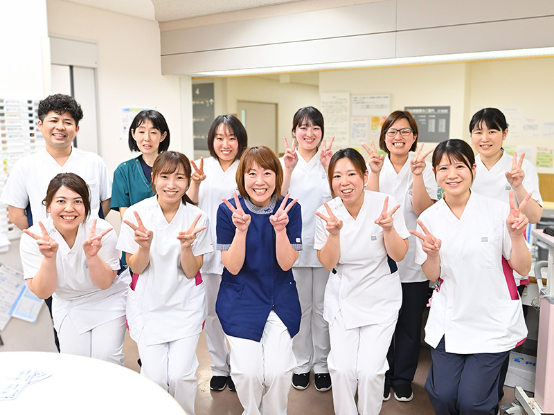 循環器では心筋梗塞や狭心症の患者さんの治療として心臓カテーテル検査やインターベーションが行われています。腎臓内科では慢性腎不全で透析導入された患者さんの療養指導を行います。また糖尿病の患者さんが多く、インスリン治療の導入や栄養・薬剤・運動療法を多職種と連携し行っています。看護師は心疾患や腎疾患、糖尿病看護に精通できるように、日々、研鑽しています。私たちは患者さんの入院生活への不安を少しでも取り除くことができ治療に専念できる環境作りと健康増進のための看護を行っています。