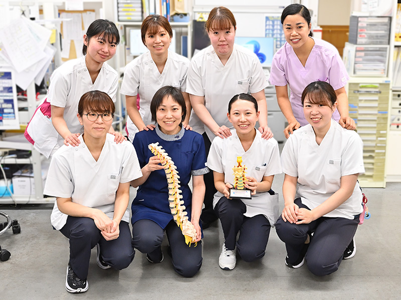 整形外科では運動器(関節,骨,筋肉,腱,靱帯や神経)疾患や外傷の患者さんが多く入院されています。手術・検査を受けられる患者さんへ、術前後の観察や術後の痛みの軽減を図り日常生活動作(ADL)の回復のための援助を行っています。近年、高齢で合併症を持ちながら手術される患者さんが多くなっています。受け持ち看護師を中心に医師や理学療法士、薬剤師、ソーシャルワーカーなどの多職種と連携し、在宅社会復帰できるように取り組んでいます。検査や手術への不安や早く良くなりたいという思いに寄り添い、温かみのある看護が提供できるように患者さんへの言葉かけを大切にしています。