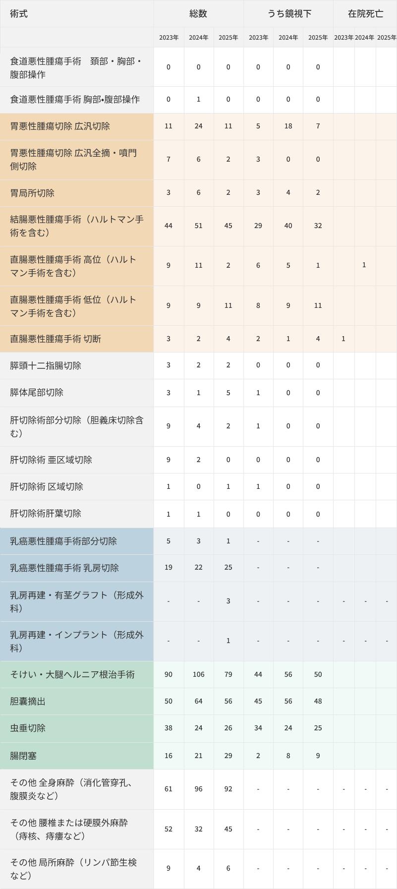 大きな手術を同時に行った場合、それぞれカウントしています。