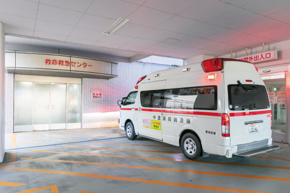 救命救急センターとは、脳卒中、急性心筋梗塞、重症外傷等の患者さんや、複数の診療科にわたる重篤な救急患者さんを、災害時も含めて24時間365日受け入れて、迅速かつ適切な救急医療を提供することを目的に設置された施設です。都道府県の医療計画に基づき、都道府県知事により指定を受けます。