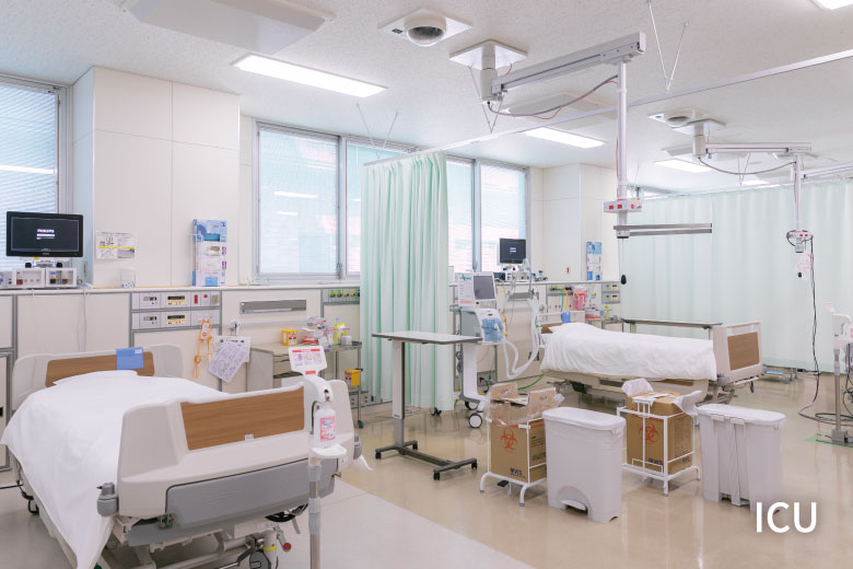 当センターにはICU8床(熱傷個室1床含む)、CCU3床、HCU12床の計23床の病床があります。