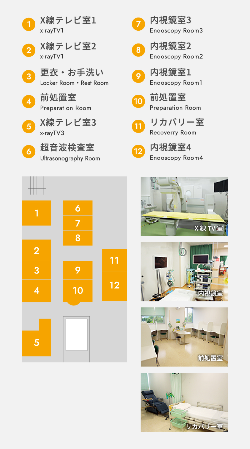 診療科ごとに行われている内視鏡検査を統合し、効率的で安全かつ快適な検査・治療を行える診療体制を整えています。内視鏡専門医、消化器内視鏡技師、看護師、臨床工学技士のもとに、最新の機器を導入し、最先端の検査・治療を行っています。