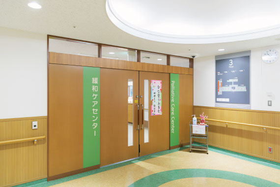緩和ケア病棟は、がんに伴う様々な症状を和らげるための「緩和ケア」を提供する場のひとつです。「緩和ケア」は患者さんが望まれる療養場所(在宅、一般病棟、緩和ケア病棟など)のどこでも提供できますが、症状が不安定で頻回に緩和ケアに精通したスタッフのかかわりが必要な時や苦痛除去のために外来では治療・処置が困難な症状がある場合などに、患者さんのご希望があれば入院していただく場所です。患者さん家族の控え室、患者さん専用の台所、面談室、一定の広さを有する談話室などを病棟内に備えており、患者さんの望まれる療養環境に少しでも近づけるよう配慮しています。苦痛緩和のための専門的な処置やお薬による症状のコントロールを行いながら、人生の最終段階をどのように生きていくかを患者さん、ご家族、医師・看護師・薬剤師・その他の専門スタッフ、皆で考え実践していくことを目的とした施設です。