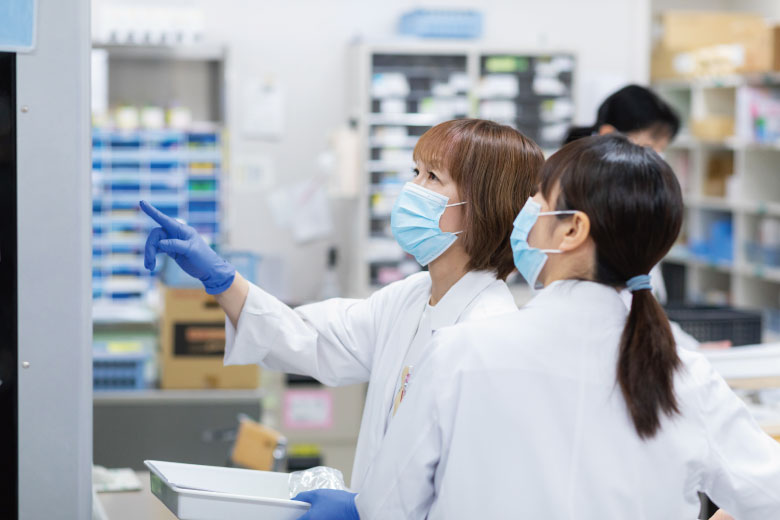 また、がん化学療法、栄養サポート、緩和ケア、感染制御、糖尿病、医療安全など様々な医療チームに薬剤師が参画しており、薬の専門家として医師や看護師、他のコメディカルスタッフと協力し、より安全で効果的な薬物療法を患者さんへ提供するため、薬剤部全体でチーム医療に取り組んでいます。