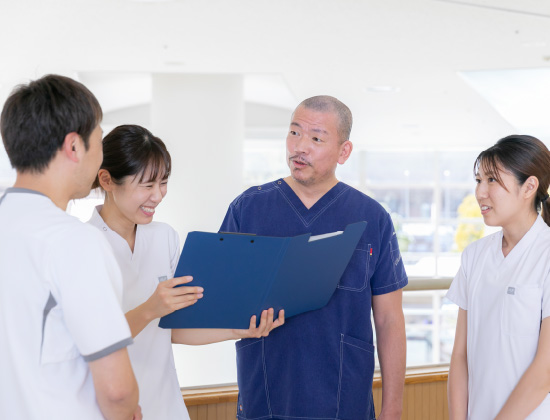 それぞれの専門性や視点を生かしながら、職種の垣根を越えて協力することで、患者さんにとって最善の医療と看護を提供できる体制を整えています。病院全体で支えるチーム医療を大切にし、安心して療養できる環境づくりに取り組んでいます。
